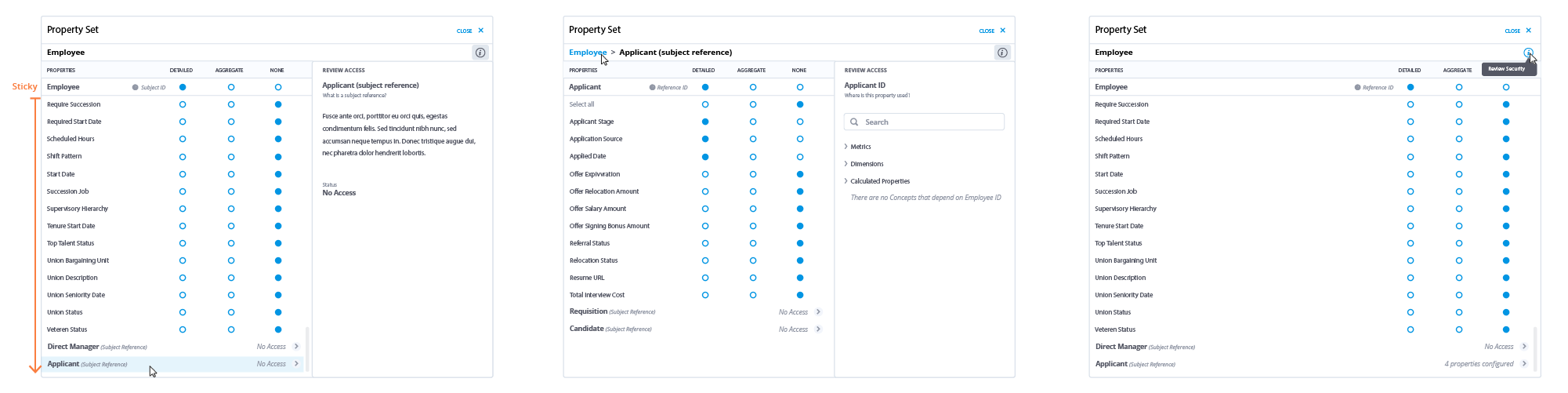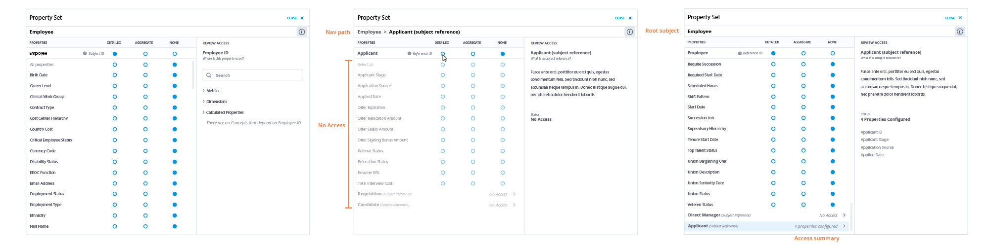 The infinitely expanding tree structure was replaced with a tab structure, displaying navigation paths and providing more clarity when working with subject references. Furthermore, I also utilized the Security Review panel to provide additional learning and guidance for administrators.