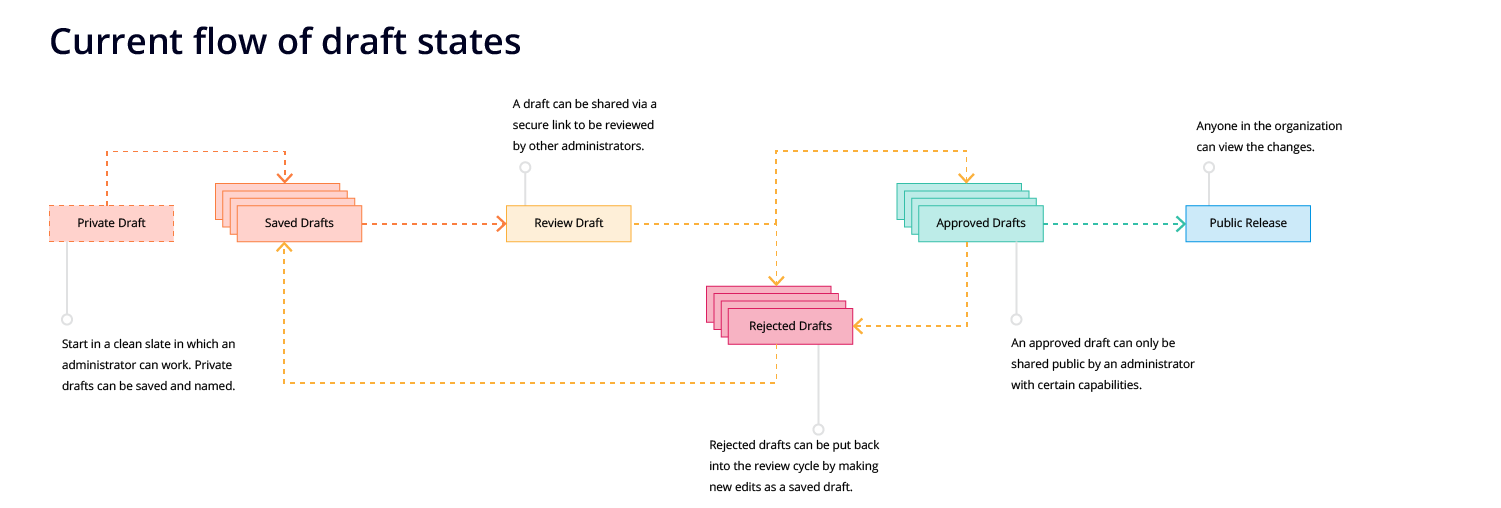 An administrator must always have answers to these questions otherwise they could be a liability, not only to themselves, but to their companies. However, as the platform continues to grow, more draft states are being added to patch up the workflow, causing the draft ecosystem to become more convoluted and unmanageable.